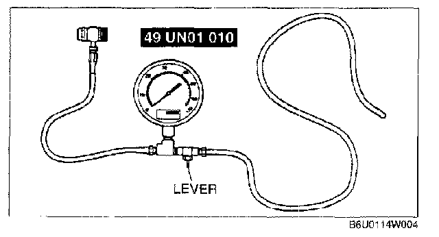 3. Make sure the lever of SST is turned fully clockwise, then connect SST (Fuel pressure gauge) to the schrader valve.