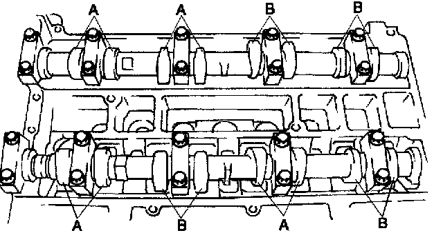 4) Measure the valve clearance at B in the figure.