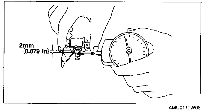 2. Read the spring pressure gauge at the brush tip projection of 2 mm {0.079 in}.