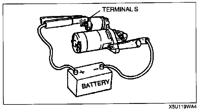 1. Pull out the drive pinion with battery positive voltage connected to terminal S and the starter body grounded.