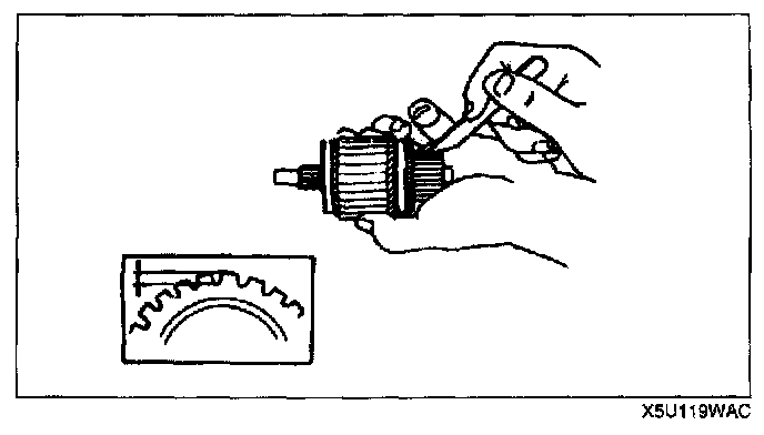 NOTE: In case the battery is being charged, the pinion may turn during a protruded state. This is normal because the current flows to the motor through the pull-in coil and the motor turns.
