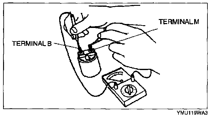 1. Inspect for continuity between terminals S and M using an ohmmeter.