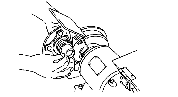 2. If the bearing inner race remains on the front wheel hub component, grind a section of the bearing inner race until approximately 0.5 mm (0.02 inch) remains. Then remove it using a chisel.