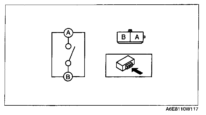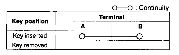 4. Inspect for continuity between the key reminder switch terminals using an ohmmeter.