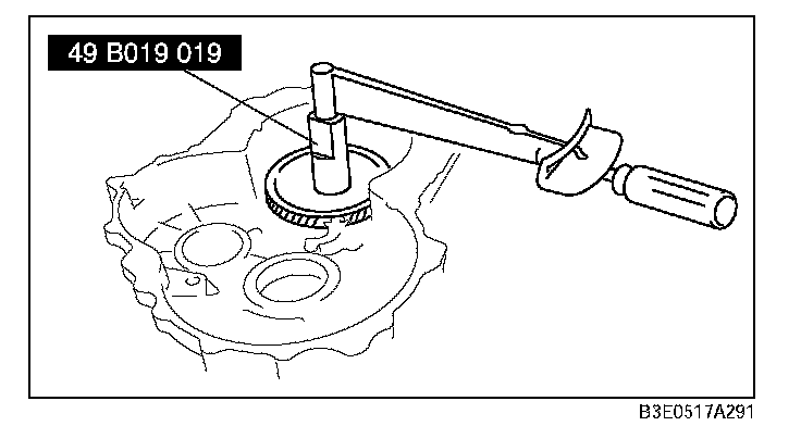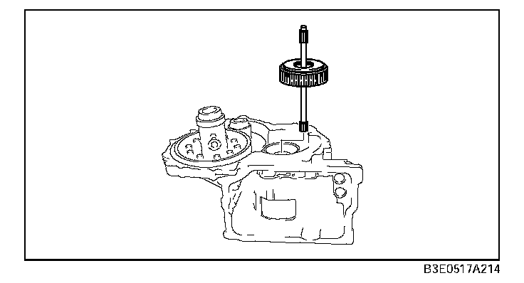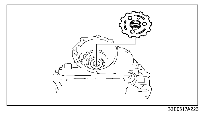 Note: Rotate the engine stand so that the oil pan faces downward. Pull the front internal gear and one-way clutch component a little until the groove for the snap ring appears, then install the snap ring.