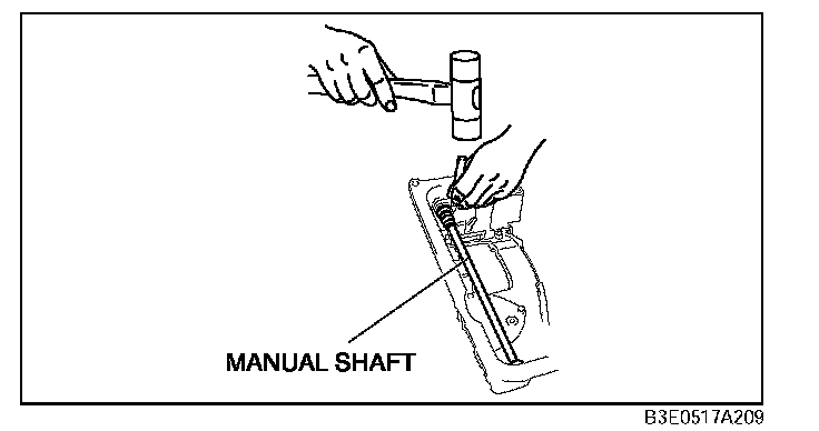 Caution: Do not use an impact wrench. Hold the manual shaft lever when removing the manual shaft nut, or the transaxle may be damaged.