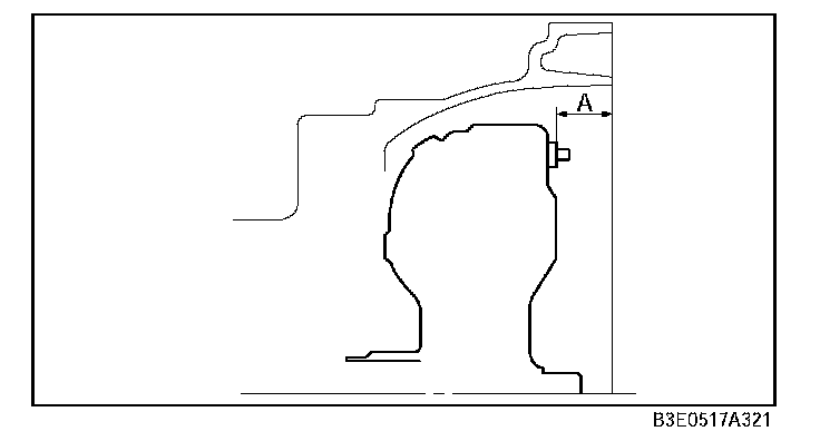 71. To ensure that the torque converter is installed accurately, measure distance A between the end of the torque converter and the end of the converter housing.