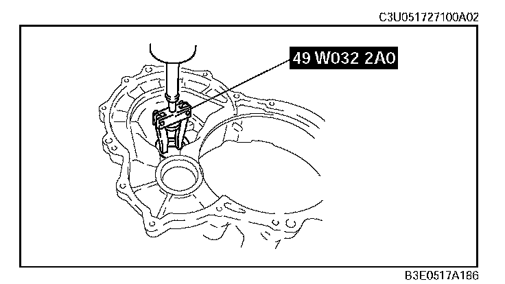 1. Remove the bearing race and adjustment shim from the converter housing using the SST.