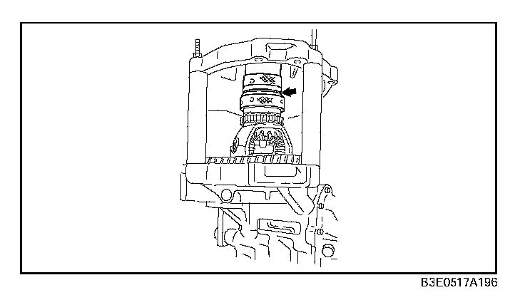 9. Turn the SST (selector) to increase the clearance (arrow) using the SSTs (bars), until it no longer turns. This is to seat the bearing race.