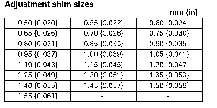 ^ The maximum allowable number of adjustment shim is one.
