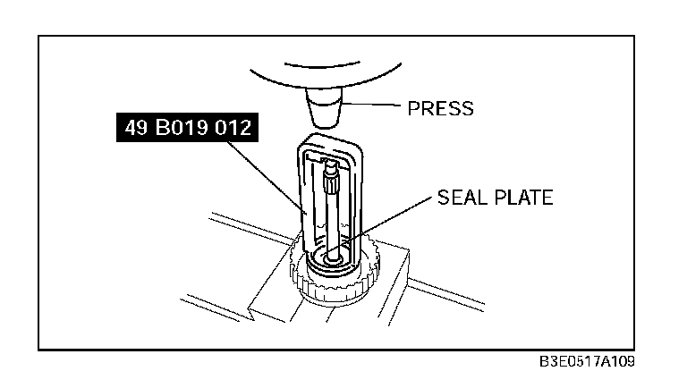 Caution: Depress the seal plate only enough to remove the snap ring. Overpressing will damage the seal plate assembly edges.