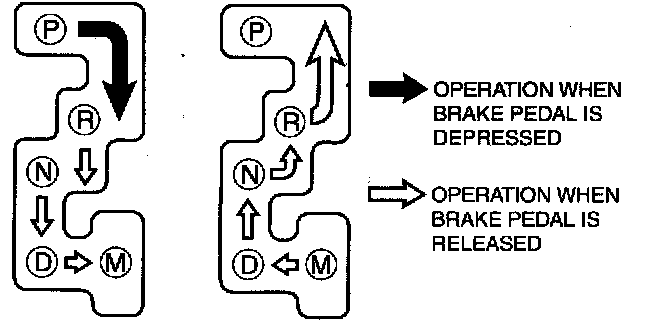 2. With the brake pedal depressed, verify that there is a "click" at each range when-shifted.