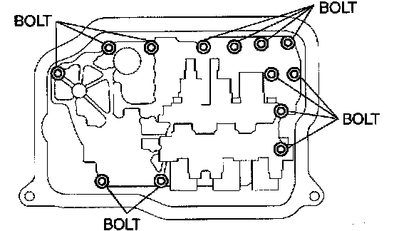 9. Remove the control valve body installation bolts A, then remove the control valve body component.