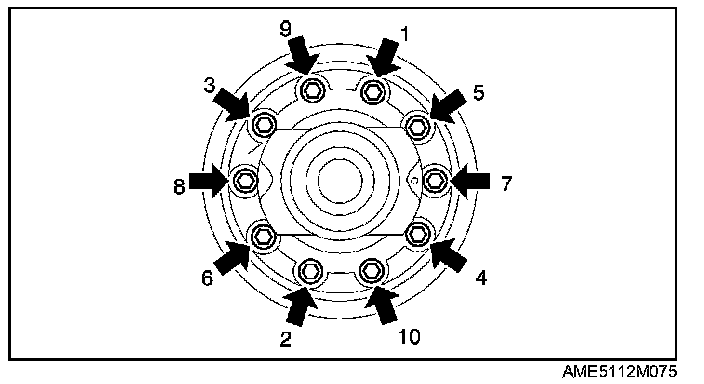 Install the gear case component, and tighten the bolt in the order shown in the figure.