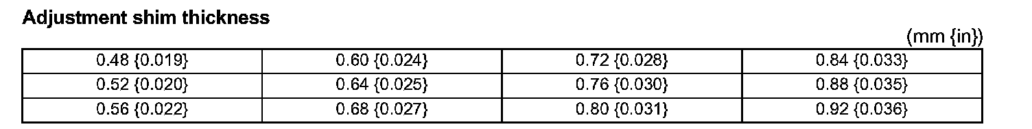 Adjustment shim thickness
