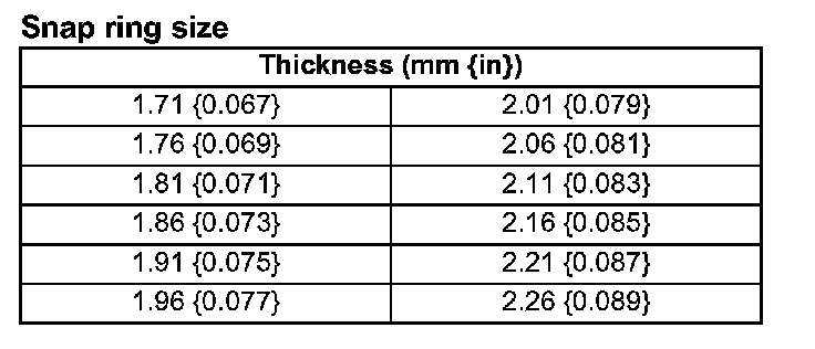^ If it is not within the specification, adjust it by selecting a proper snap ring from below.