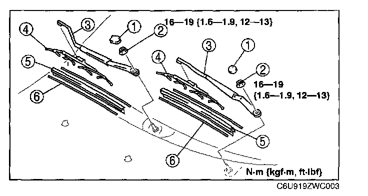 WINDSHIELD WIPER ARM AND BLADE REMOVAL/INSTALLATION1. Remove in the order indicated in the table.