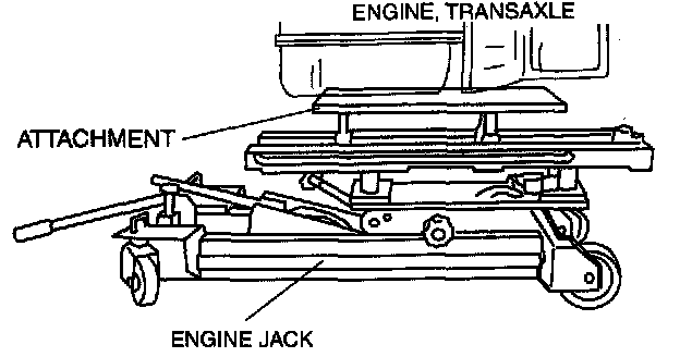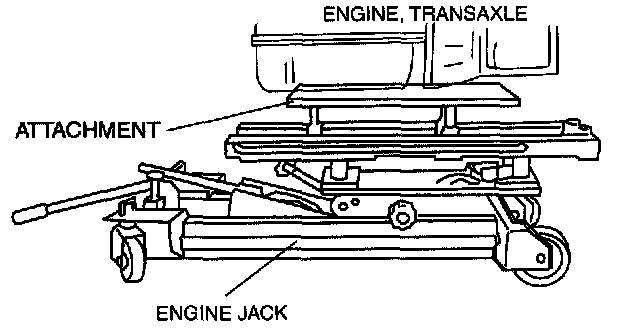 1. Secure the engine and the transaxle using an engine jack and attachment as shown.