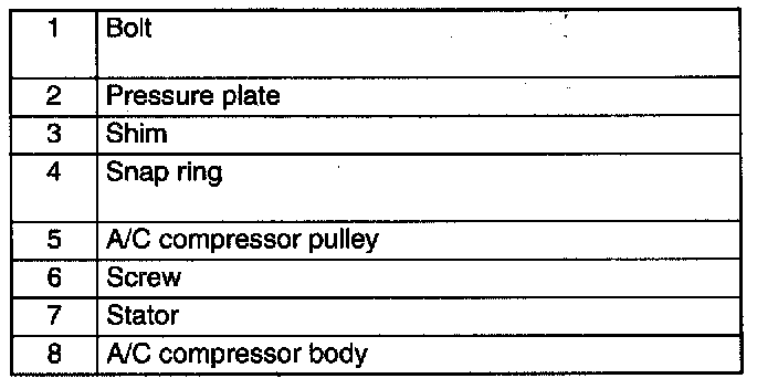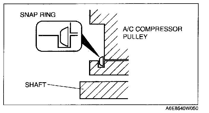 1. When installing a new pressure plate, A/C compressor pulley, stator, or A/C compressor body, replace the snap ring.