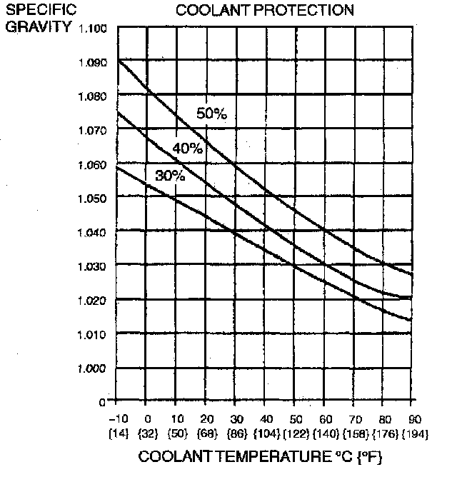 ENGINE COOLANT PROTECTION INSPECTION1. Measure the coolant temperature and specific gravity with a thermometer and a hydrometer.