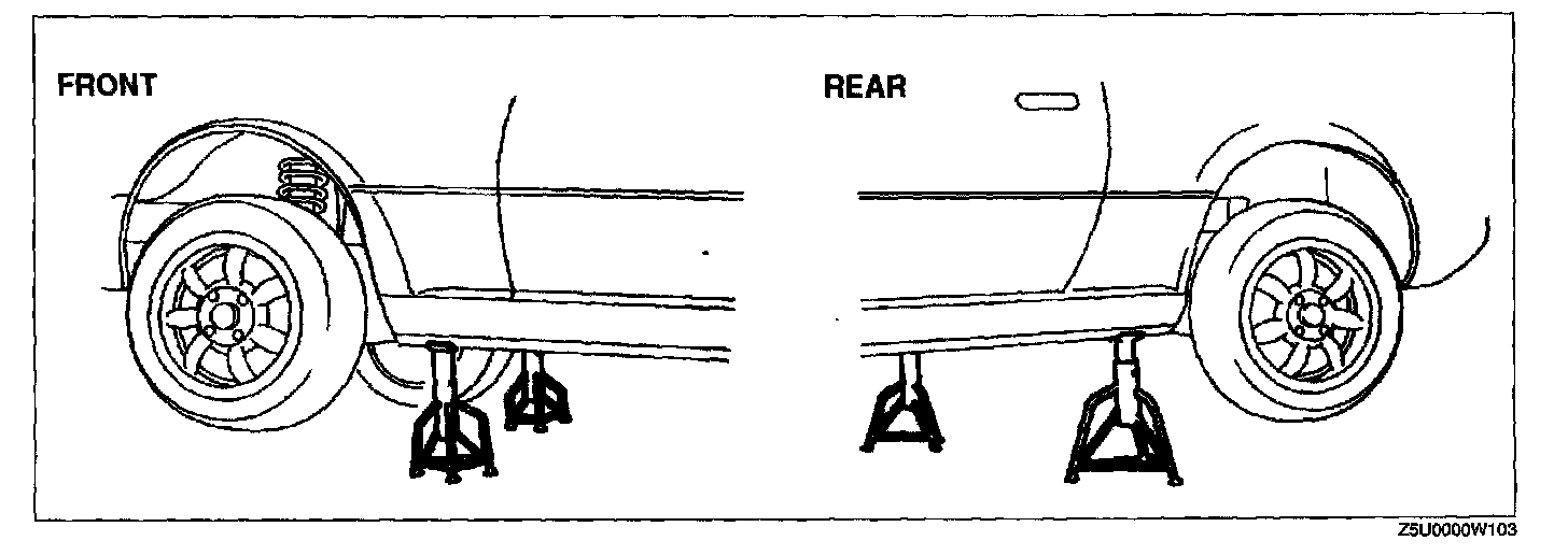 VEHICLE LIFT (2 SUPPORTS) AND SAFETY STAND (RIGID RACK) POSITION