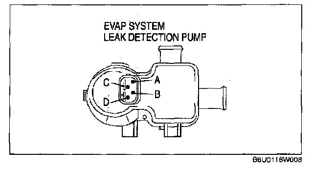 - EVAP system leak detection pump terminal B (harness-side) and the body GND