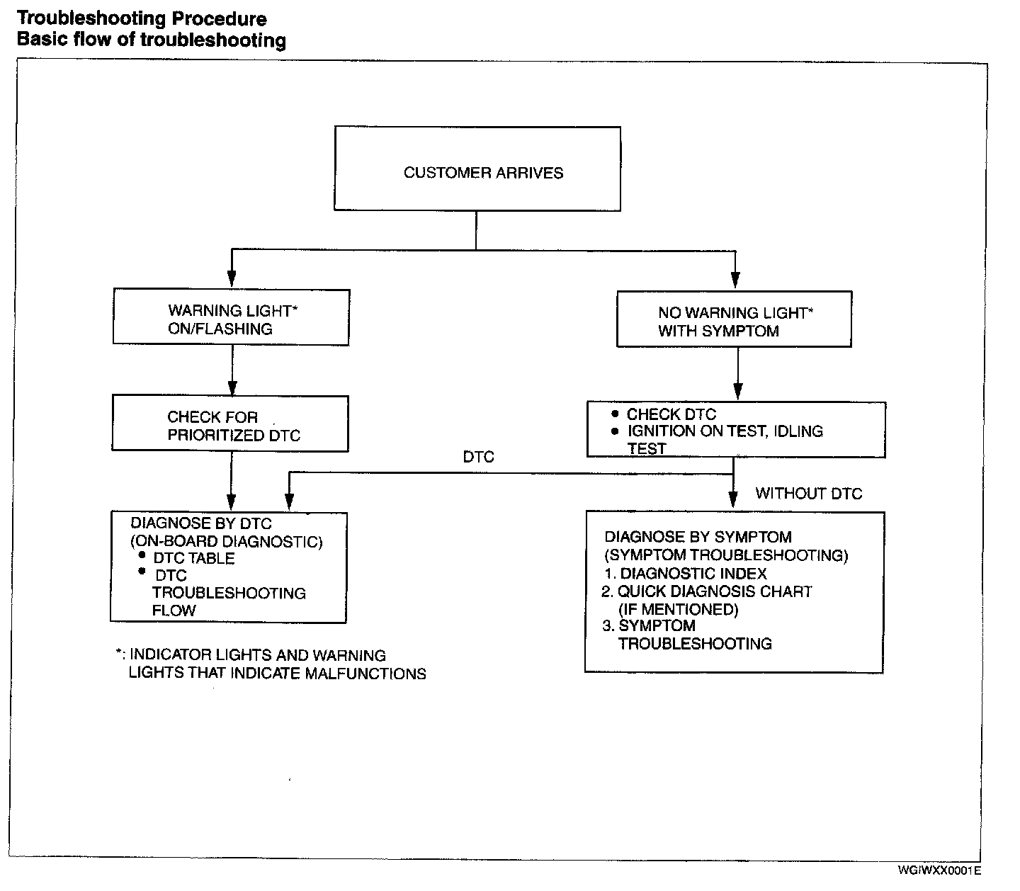 - The quick diagnosis chart lists diagnosis and inspection procedures to be performed specifically relating to the cause of the malfunction.