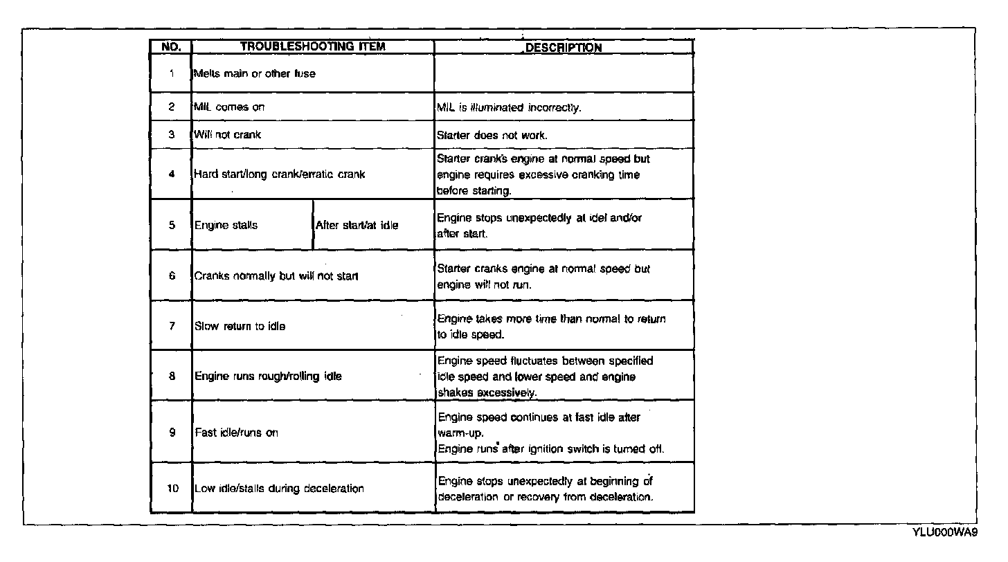 - The chart lists the relation between the symptom and the cause of the malfunction.