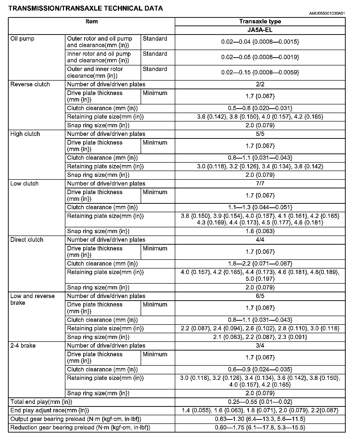 Transmission/Transaxle Technical Data (Part 1):