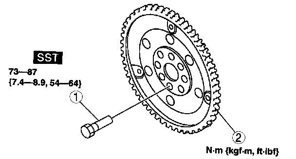 73 - 87 Nm (7.4 - 8.9 kgf-m, 54 - 64 ft. lbs.)