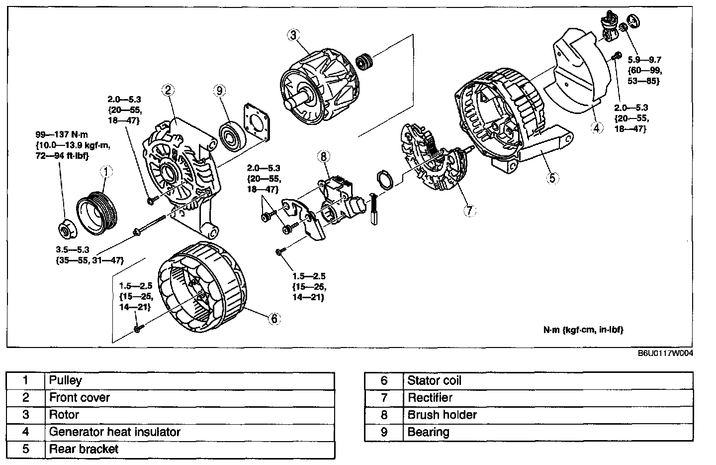 GENERATOR DISASSEMBLY/ASSEMBLYCAUTION: Melt the solder quickly, otherwise the diodes (rectifier) and regulator will be damaged by excessive heat.