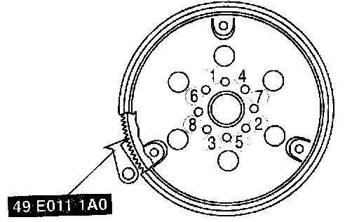 5. Tighten the drive plate mounting bolts in two or three steps.