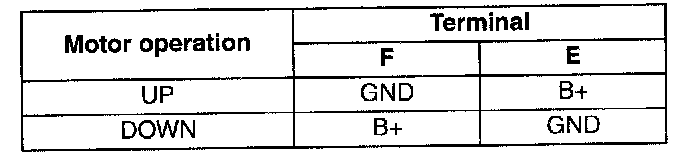 terminals and inspect the power window motor operation.