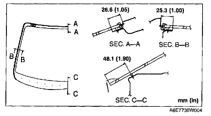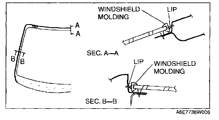 NOTE: Before removing the windshield from the body, mark the position of the windshield by affixing tape to the windshield and body panel.