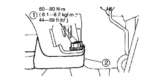 Tightening torque: 60-80 N-m (6.1-8.2 Kgf-cm, 44-59 ft-lbf).