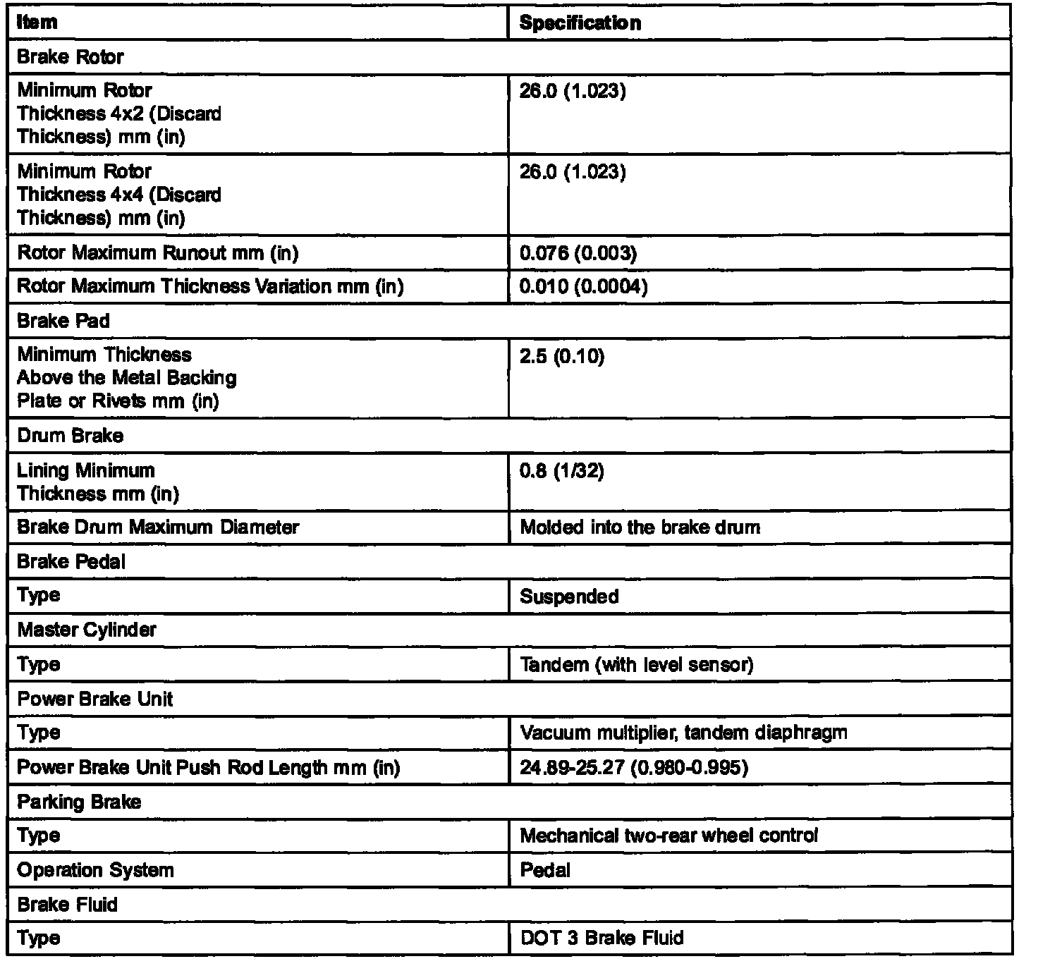 Brakes and Traction Control: Specifications