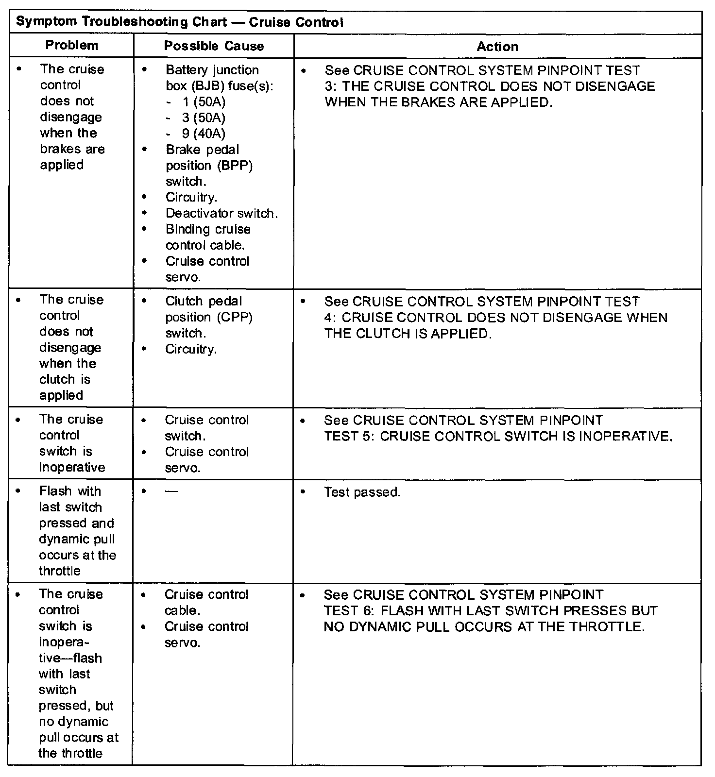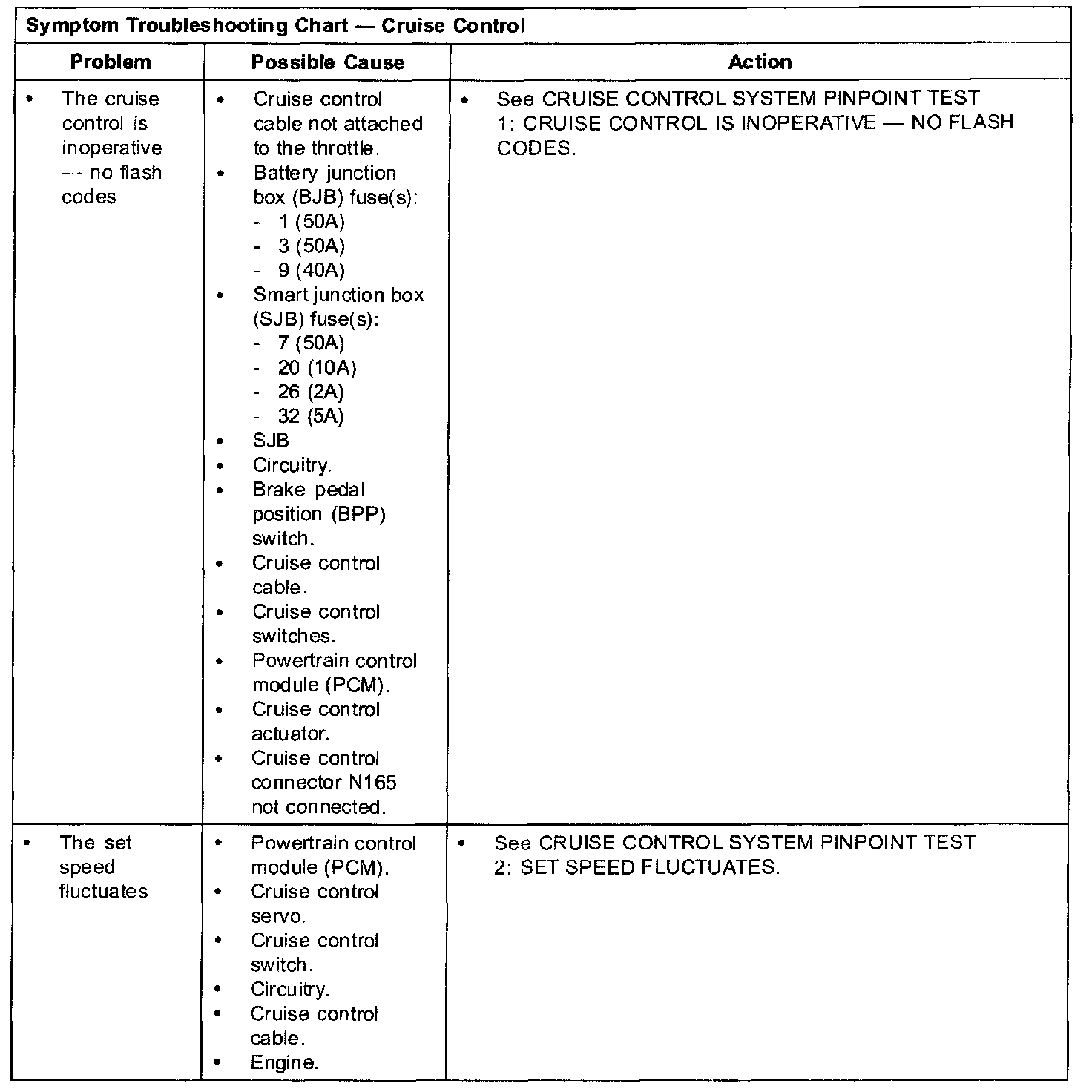SYMPTOM TROUBLESHOOTING CHART - CRUISE CONTROLCruise Control Self-Test Diagnostics