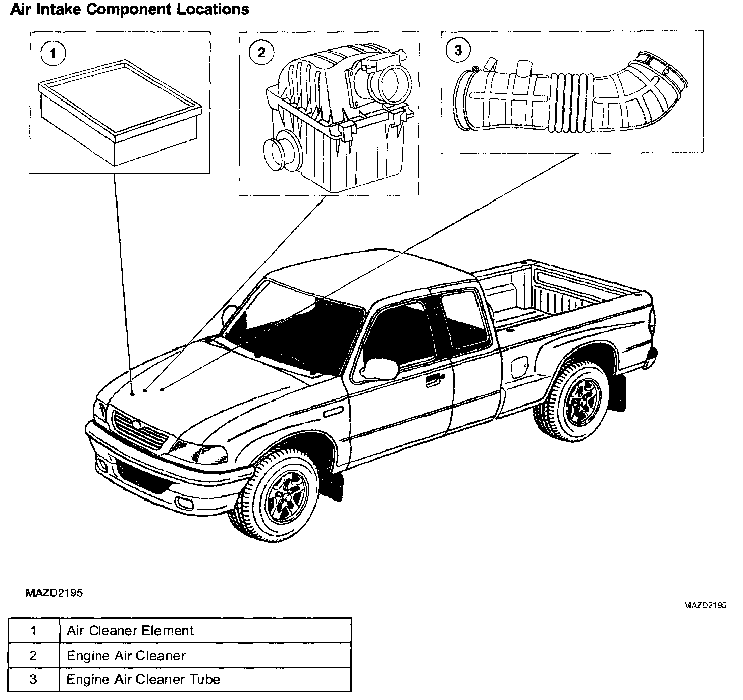 The air induction system supplies filtered air to the engine to mix with the fuel for combustion purposes. The air induction system consists of: