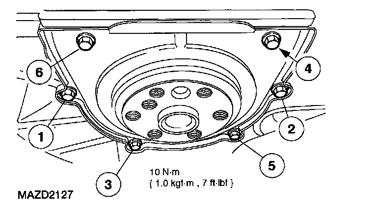 6. Install the rear main oil seal and tighten in the sequence shown.