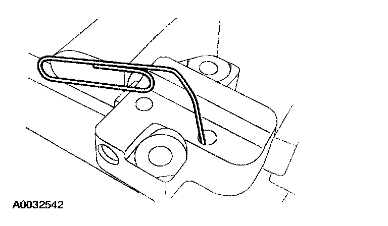 22. Install a paper clip into the hole in the tensioner housing to hold the ratchet assembly and the plunger in during installation.