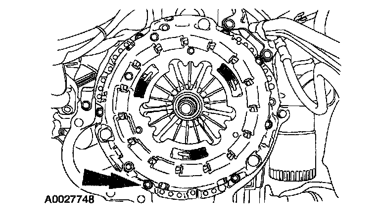 ^ If the parts are to be reused, index-mark the clutch pressure plate to the flywheel.