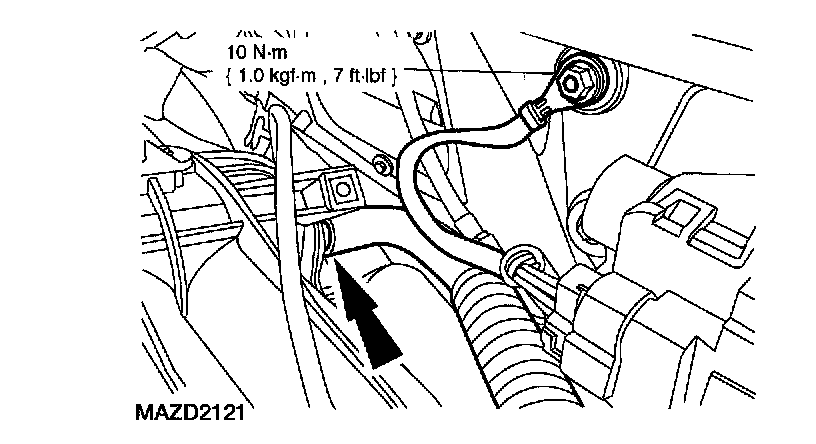 26. Disconnect the brake booster vacuum hose and the engine ground strap.