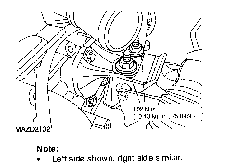 55. Remove the four engine support insulator nuts.