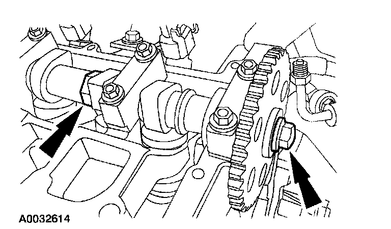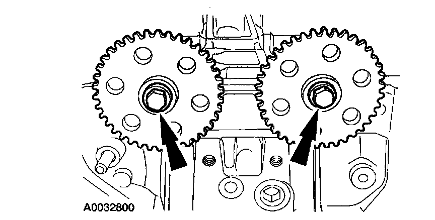 2. If the camshaft sprockets were not removed, use the flats on the camshafts to prevent camshaft rotation and loosen the sprocket bolts.