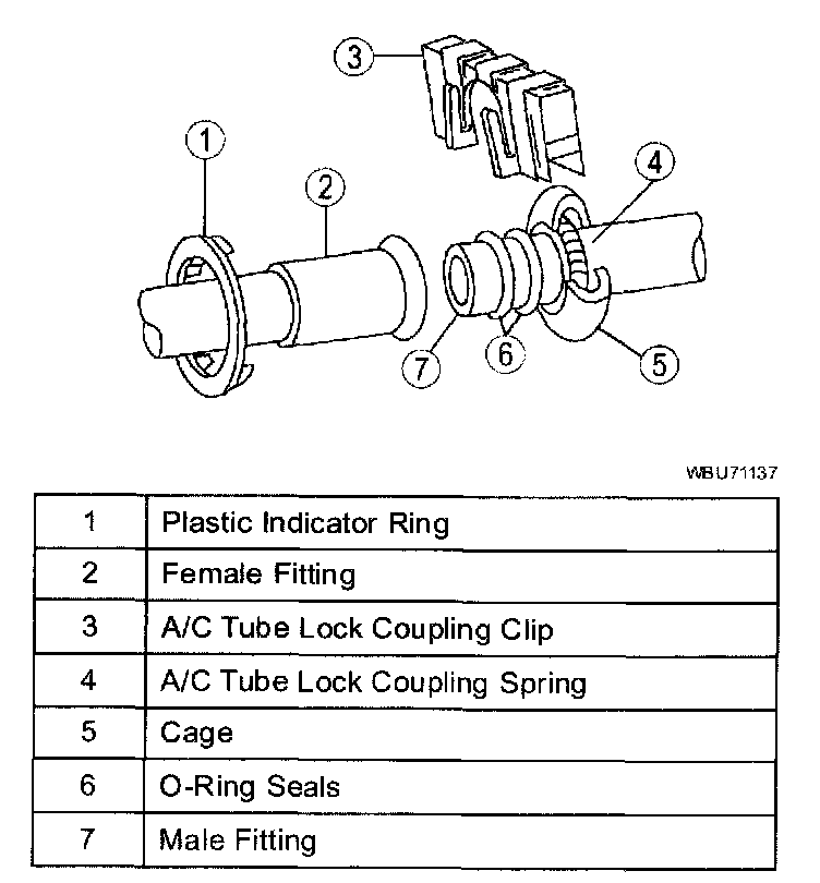 - An A/C tube lock coupling clip may be used to secure the coupling but is not required.