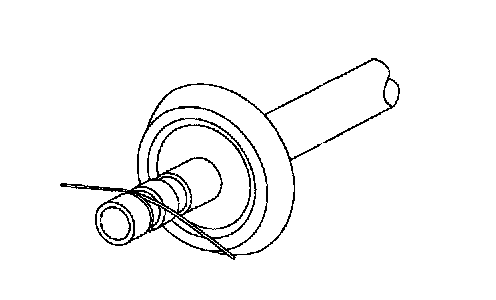 6. Remove the A/C tube lock coupling spring with a small hooked wire.