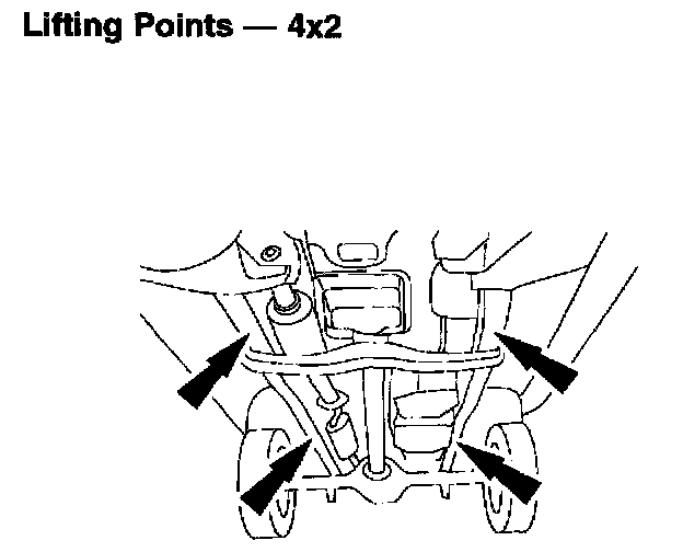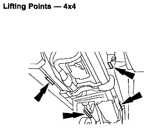 Caution: Damage to suspension, exhaust and steering linkage components may occur if care is not exercised when positioning the hoist adapters prior to lifting the vehicle.