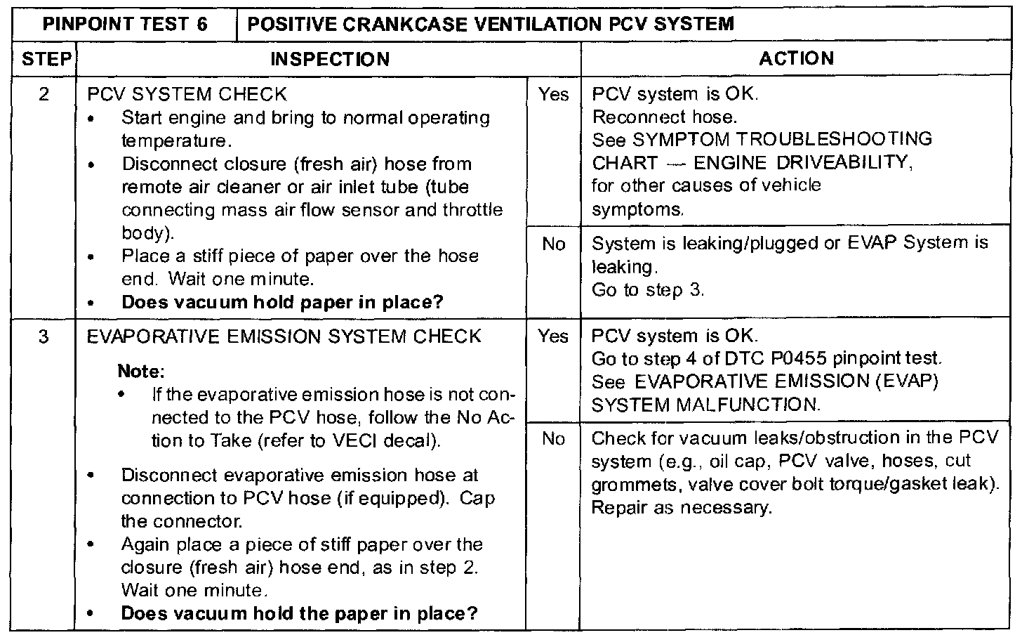 Test 6: Positive Crankcase Ventilation (PCV) System