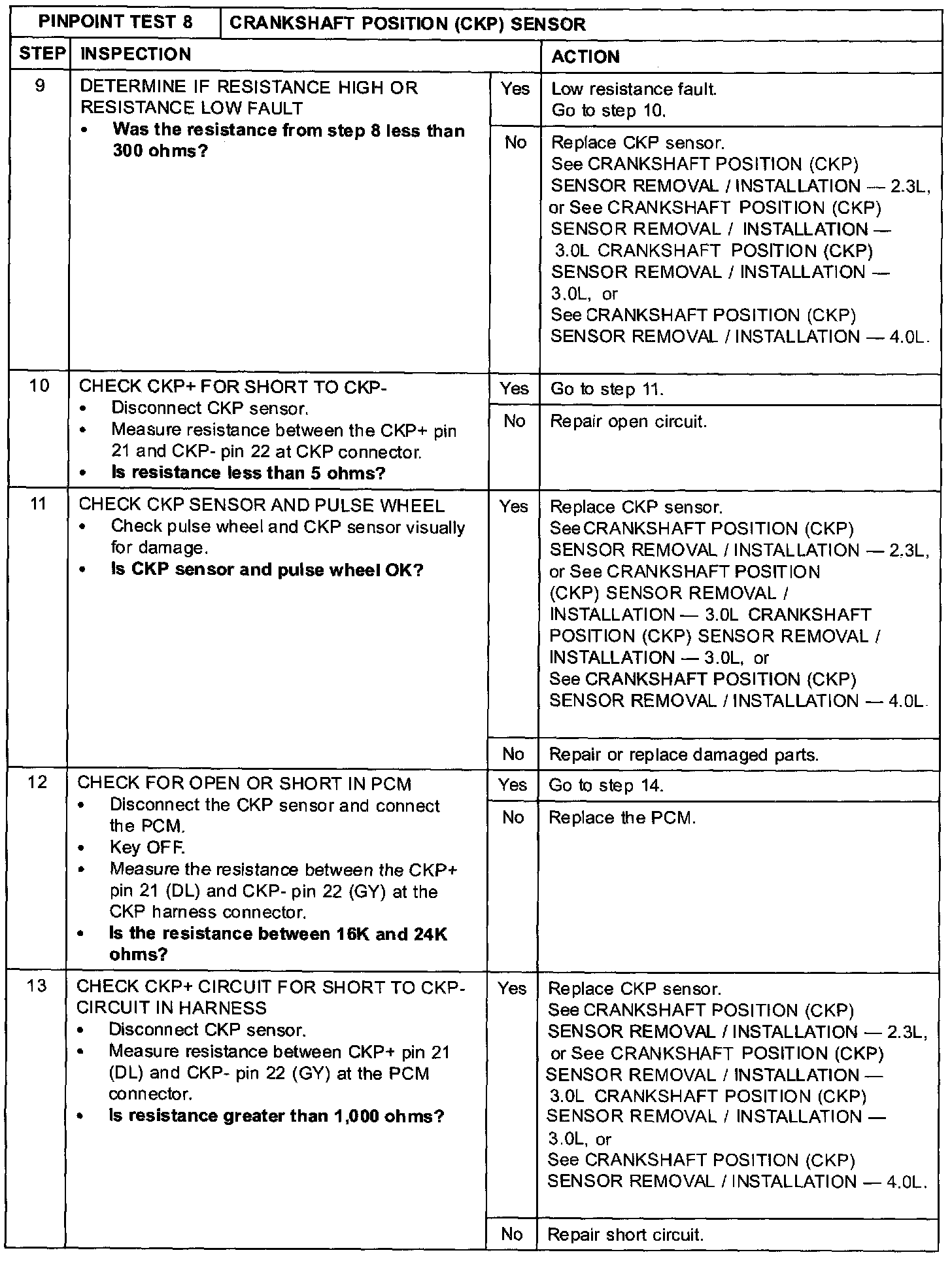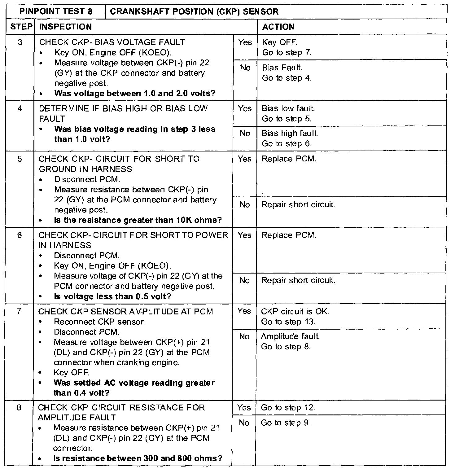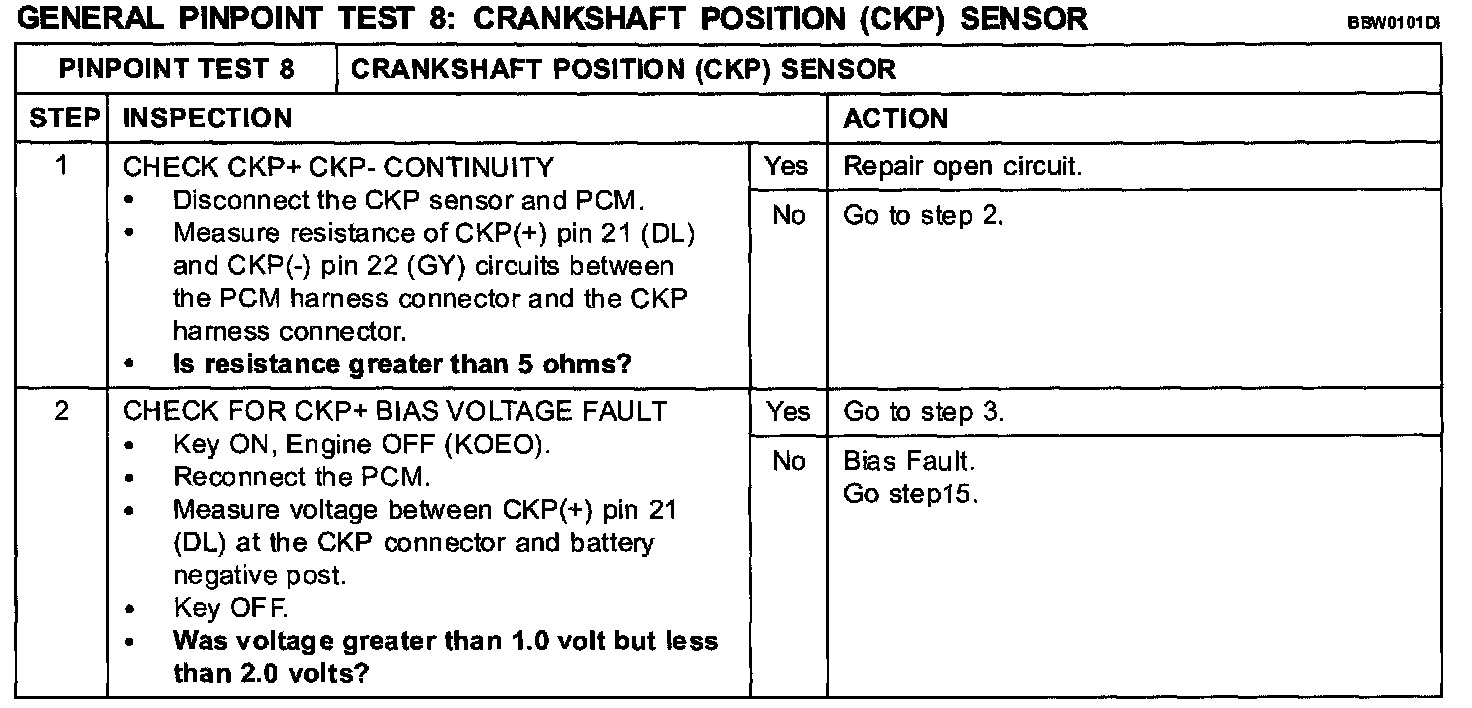 Test 8: Crankshaft Position (CKP) Sensor