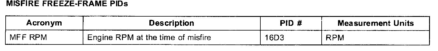 MISFIRE FREEZE-FRAME PIDs